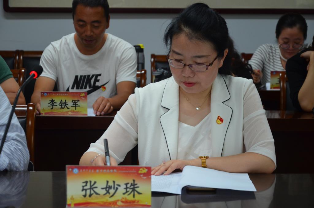 PP电子游戏官网17个二级学院的34名教师党员代表参加了座谈会,其中17名教师分别结合工作岗位实际,交流分享了学习体会。党委委员、副校长梁政出席会议并讲话。党委委员、人事处处长李景杰主持座谈会。