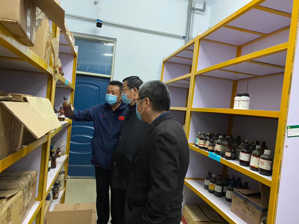 检查组一行重点检查了实验室安全责任体系建设和责任制落实情况;各类实验室安全管理制度、实验室准入制度、实验设备管理制度、实验安全记录等制度的制定和落实情况;实验室安全教育及应急预案建立情况;实验室疫情防控工作常态化落实情况;实验用危险化学品、生物安全、特种设备、废弃物等风险点安全管理情况;实验室用电线路、排风设备、消防设施、药品保管情况;应急喷淋洗眼、气体浓度报警器等安全硬件保障设施配置及维护情况等。