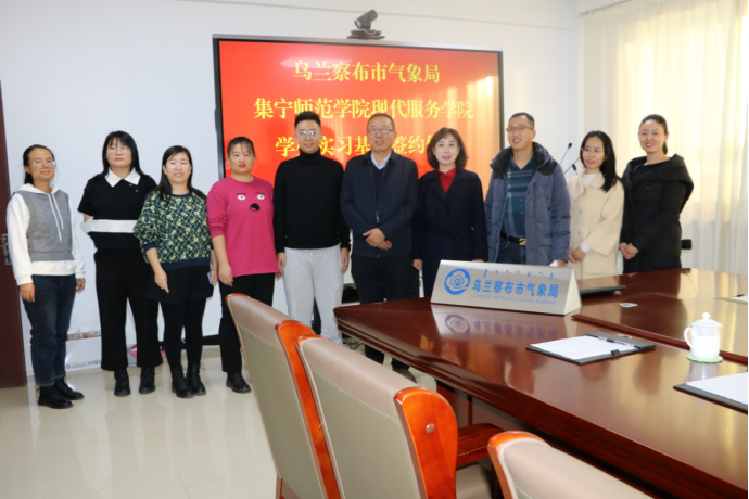 乌兰察布市气象局任福江局长领导班子参加了签字仪式。任福江对近期学生实习和录制节目表示满意,希望更多学生能走进气象局,成为一名气象播音员。