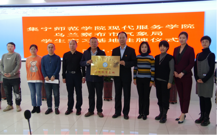 为进一步提高播音主持与艺术专业学生的实践能力,实现课堂教学与实践教学相结合,同时给学生提供更多的实习实训平台。12月8日下午,现代服务学院院长王汉君、副院长武俊芳赴乌兰察布市气象局进行学生实习基地挂牌仪式。