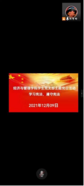为认真学习贯彻习近平法治思想,深入贯彻落实党的十九大和十九届六中全会精神,推动我院师生学习宣传宪法,弘扬宪法精神,维护宪法权威。经济与管理学院学生党支部全体党员于12月9日开展线上“学习宪法,遵守宪法”主题党日活动。