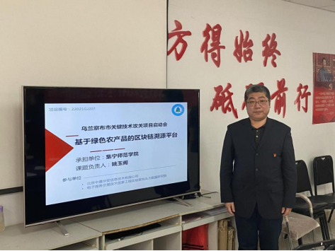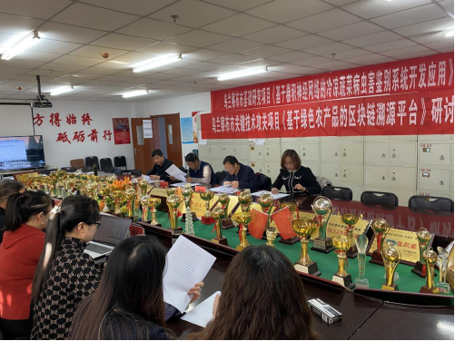 关键技术攻关项目负责人姚玉阁教授和成员单位电子商务交易技术国家工程实验室包头大数据研究院魏利杰、北京中晟华安信息技术有限公司董事长兰助晴对《基于绿色农产品的区块链溯源平台》项目的研究意义、项目的验收标准、涉及成果、分工情况、经费使用情况以及项目进度进行了汇报。