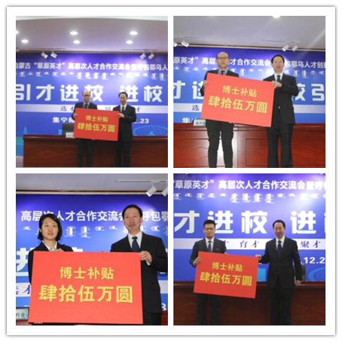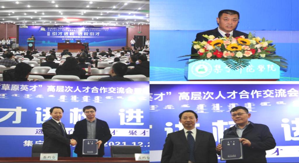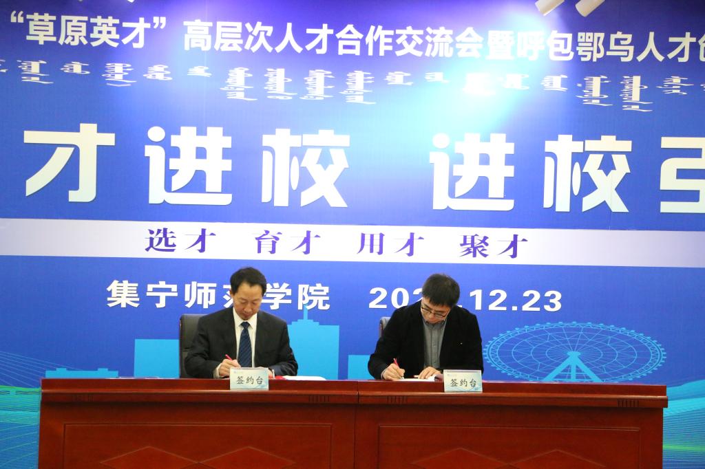 12月23日上午,第九届内蒙古“草原英才”高层次人才合作交流会暨呼包鄂乌人才创新创业周在乌兰察布市主会场开幕,下午,PP电子游戏官网承办的“引才进校、进校引才”分项活动在图书馆报告厅隆重举行。合作单位代表、全体校领导、党委委员、各部门主要负责人、博士及在读博士教师等200余人参加活动。校党委书记朱玉东发表总结讲话,党委副书记、校长李树林与合作单位代表举行了签约、揭牌仪式。活动由党委委员、副校长李景杰主持。