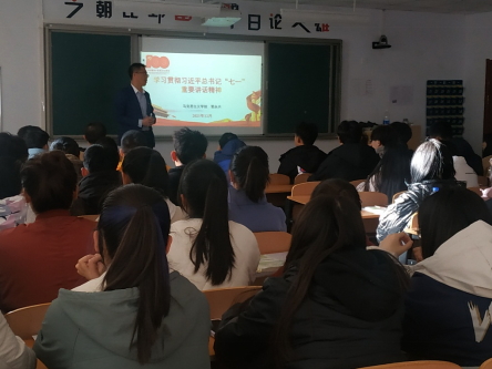 12月7日,邀请PP电子游戏官网马克思主义学院教师、自治区“铸牢中华民族共同体意识”青年宣讲团成员郭永兴为计算机与大数据学院学生作了题为《学习贯彻习近平总书记“七一” 重要讲话精神》的专题讲座,活动由赵晓英主持,计算机与大数据学院近80多名学生聆听了讲座。