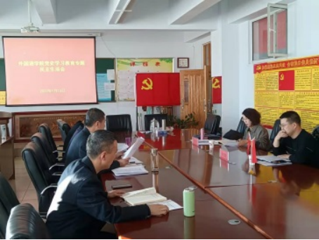 1月15日,外国语学院在教学主楼509召开党史学习教育专题民主生活会。出席本次会议的有校党委委员、统战部部长张秀文、学校党史学习教育第一指导组副组长、纪委副书记、纪委办公室副主任唐学明到会指导。会议由外国语学院党总支书记王世青主持,外国语学院领导班子全体成员参会。