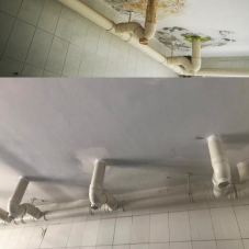 修缮前后楼宇门庭地板 个别防水岩修缮