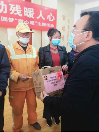 5月14日,在全国第32个助残日来临之际,为营造社区扶残助残氛围,形成理解、尊重、关心、帮助残疾人的良好社会风尚,虎山街道百旺社区党支部组织开展结对共建帮助困难残疾人圆梦“微心愿”专项活动。物理与电子信息工程学院党总支书记董永胜和副书记李刚受邀参加。