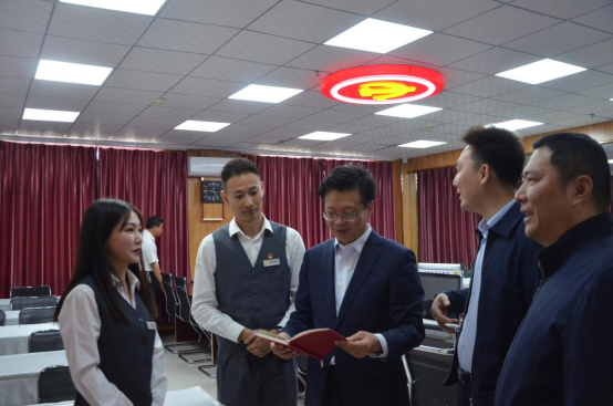 乌兰察布宏星院职业培训学校董事长刘瑞军向朱玉东一行介绍了五大板块企业文化和取得的办学成就。双方一起观看了PP电子游戏平台网站与宏星院校企合作成果舞台剧《黎明之前》,同时就人才培养、基层党建、横向课题研究、吸纳毕业生就业创业及实习实训等方面工作进行了全面深入地洽谈。