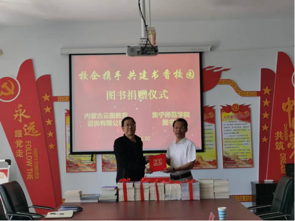 此次捐赠活动以“校企携手,共建书香校园”为主题。捐赠仪式上,校党委委员、副校长梁政代表学校对内蒙古云图教育咨询有限公司表示感谢,并颁发了捐赠荣誉证书。梁政表示,校企间的合作是学校建设和发展的重要途径之一,希望能够以此次活动交流为契机,充分发挥学校、图书馆和企业之间的资源优势,在各方面相互支持,开启全方位、多样化的合作渠道和模式。同时,也希望图书馆今后能够加强与相关企业之间的沟通协作,进一步丰富馆藏资源,营造浓厚读书氛围,共建书香校园。