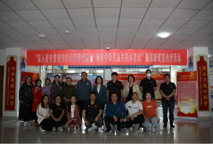 蒙古学学院党总支书记额尔敦其其格结合“深入学习贯彻党的民族理论政策 铸牢中华民族共同体意识”民族政策宣传月活动主题,带领党员同志们参观学习了学院的民族政策宣传展板。