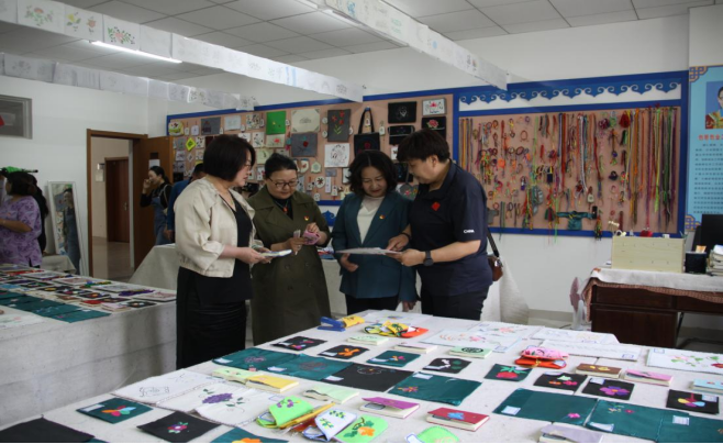 全体党员在蒙古学学院创新创业工作室负责人图雅老师的带领下参观了学院创新创业工作室。工作室展示着学院师生设计制作的300多件蒙古族刺绣作品,成为学院开展创新创业教育和劳动教育的一个重要平台。