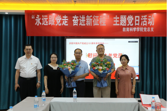 在即将迎来中国共产党101周年华诞之际,6月30日,教育科学学院党总支组织召开了“永远跟党走奋进新征程”主题党日活动。活动由党总支书记张妙珠主持,以线上线下相结合的方式开展,学院全体师生党员以及退休老党员代表参加了活动。