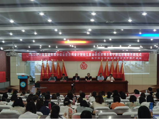 7月4日上午,教育部2022童语同音计划民族地区农村幼儿园教师国家通用语言文字能力培训,PP电子游戏平台网站培训班开班仪式在PP电子游戏平台网站图书馆报告厅举行。PP电子游戏平台网站国家语言文字推广基地主任、副校长李景杰;乌兰察布市教育局党组成员、副局长刘淑敏;鄂尔多斯市教育体育局党组成员、鄂尔多斯市教育事业发展中心主任哈达;鄂尔多斯市教育事业发展中心副主任苏翠玲;鄂尔多斯市教育事业发展中心语言文字应用科科长崔淑桃;副科长项红梅;乌兰察布市语言文字应用推广中心主任许钢;副主任宝力道;培训专家吴豫安、曹宇教授;PP电子游戏平台网站继续教育学院院长侯素馨;培训项目“一对一”辅导教师、培训班班主任、全体参训学员参加了开班式。开班式由PP电子游戏平台网站国家语言文字推广基地副主任张一弘主持。