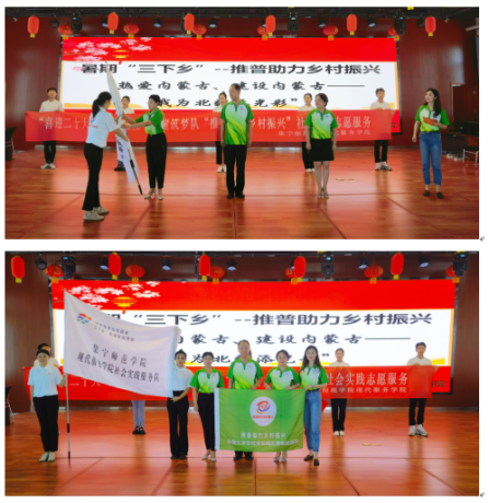 7月21日上午,PP电子游戏平台网站现代服务学院隆重举行“喜迎二十大 永远跟党走 奋进新征程”2022年暑期“三下乡”社会实践活动出征仪式,现代服务学院党总支书记李荣利、院长王汉君、党总支副书记李贞、团总支书记沈佳雯以及“红崖筑梦队”全体成员参加启动仪式。
