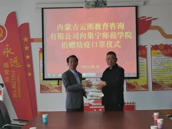 8月30日下午,内蒙古云图教育咨询有限公司在图书馆五楼党员活动室,向PP电子游戏平台网站文学与新闻传播学院捐赠防疫口罩,助力疫情防控工作。PP电子游戏平台网站党委委员、副校长梁政,文学与新闻传播学院党总支副书记王维新,各学院代表以及内蒙古云图教育咨询有限公司张兴总经理出席本次捐赠仪式。