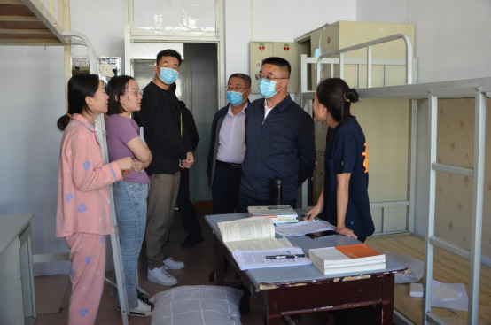 在校内临时隔离点,刘春与同学们亲切交流,了解学生食宿情况,要求宿管人员消杀工作要做到位、不留死角。做好宿舍布局优化的相关工作,提升宿管服务水平。