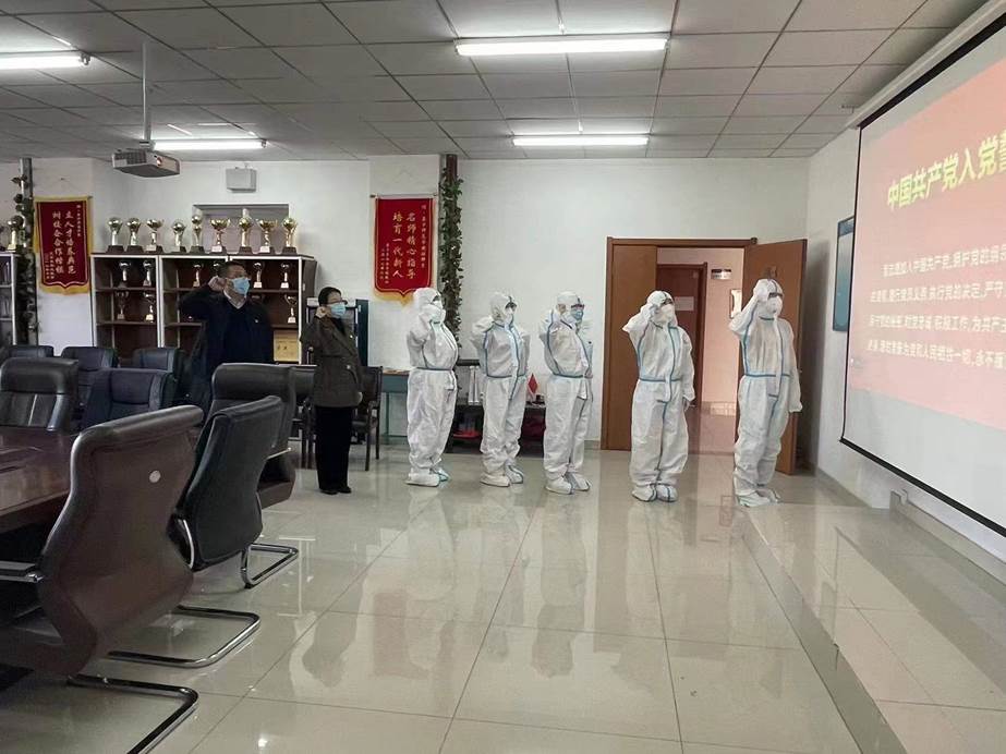 已连续几日奔忙在核酸检测一线的党员教师们,庄严肃穆,激情澎湃,面对党旗重温入党誓词,再一次向敬爱的党做出“对党忠诚,积极工作,为共产主义奋斗终身”的承诺。