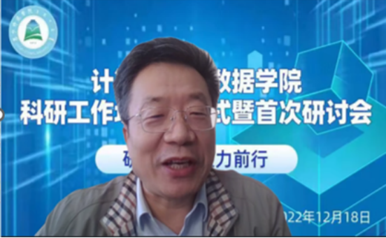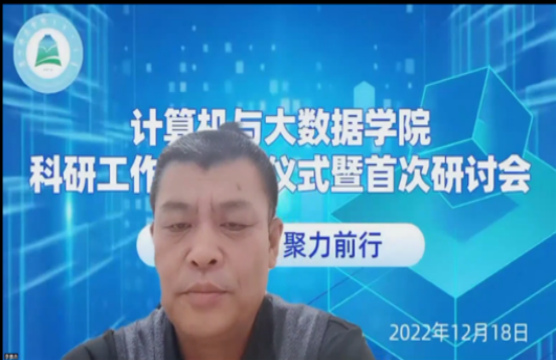 邢德胜做讲话总结。他指出学院目前的科研水平、科研能力还比较低,科研工作缺少带头人,缺少团队,缺少高质量的科研成果。科研工作坊的成立,对计算机与大数据学院的科研工作有积极意义,拉开了凝心聚力搞科研的序幕,将以工作坊为样板,以“聚集团队、构建平台、承担任务、催生成果”为导向,推进学院科研工作上台阶、上水平。