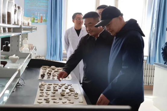 刘春对调研组一行的到访表示欢迎并向调研组介绍了学校基本情况及取得的主要成绩。调研组先后考察了PP电子游戏官网产教融合实习实训基地(楼)建设工地、自治区级重点实验室——内蒙古矿土土质改性及综合利用重点实验室、元瓷博物馆、中华再造善本等场所。