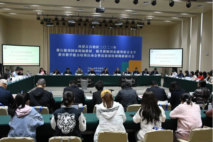 首先召开了内蒙古自治区2023年推行使用国家统编教材、提升教师国家通用语言文字教育教学能力培训启动会。陈长征、贾云分别代表天津、内蒙古自治区教育行政主管部门作了讲话,并对即将开展的2023年相关培训工作提出要求和期望。启动会由内蒙古自治区教育厅教师工作处处长王俊威主持。