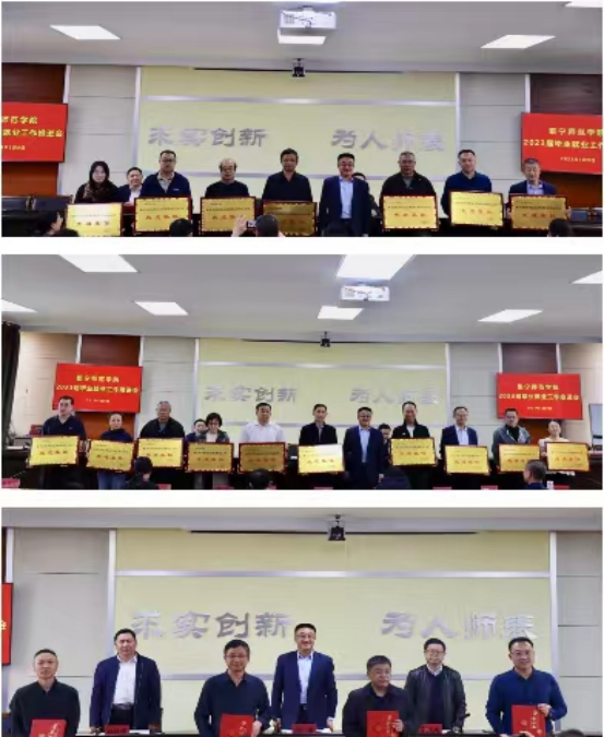 推进会上,学校对10个就业工作先进集体和7个创新创业先进集体进行表彰并颁发了奖牌。对第八届“互联网+”大学生创新创业大赛获奖师生进行了表彰奖励。