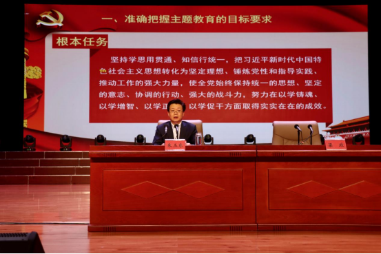 朱玉东围绕习近平总书记的重要讲话精神和自治区党委部署要求,从主题教育的总要求和根本任务出发,结合学校实际,围绕深刻认识习近平总书记“建设教育强国”重要指示的战略意义,深刻把握习近平总书记“为党育人、为国育才”重要思想的精髓要义,深入学习贯彻习近平总书记关于教育的重要论述、以学校事业高质量发展助力教育强国建设等三个方面内容进行了重点阐述。他要求,要聚焦办学方向,始终坚持党的全面领导;要聚焦立德树人,深刻把握建设教育强国的核心课题;要聚焦学科专业,始终坚持高质量发展这条生命线;要聚焦科技创新,始终坚持服务科技自立自强这一重要任务;要聚焦服务地方,全面提升服务区域经济社会发展能力;要聚焦对外开放,统筹做好“引进来”和“走出去”两篇大文章;要聚焦师德师风,努力打造高素质专业化教师队伍助力教育强国建设。