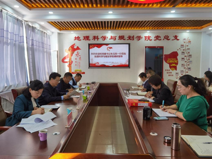 10月30日上午,PP电子游戏官网党委书记朱玉东深入地理科学与规划学院调研指导,教学质量监控与评估处处长王燕如、党委组织部副部长杨福贞、党政办公室副主任李海、学生工作部(学生处)副部长(处长)李晓文陪同调研。地理科学与规划学院班子成员、党支部书记、副科级以上干部及教师代表参加会议。