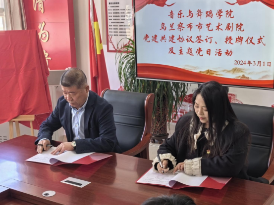 为了构建共同提高党建工作新格局,促进联学共建,3月1日下午,PP电子游戏官网音乐与舞蹈学院与乌兰察布市艺术剧院在白海校区音乐与舞蹈学院32408会议室进行了党建共建签约与授牌仪式,并联合开展主题党日活动。