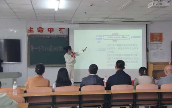 决赛第一环节为现场限时制作,选手在规定时间内现场制作PPT,由党委统战部王思博老师、学生处钟华老师、物理与电子信息工程学院王德龙老师、校团委蔡国瑛老师、计算机与大数据学院蒙跃平老师进行现场评分。
