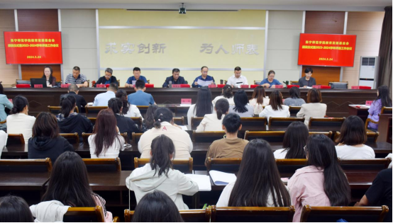曹宇宣读了2023年度“君远教师教学优质奖”和“君远师范生实习实践优秀成果奖”获奖人员名单,校领导、有关行政管理部门负责人、基金会理事长、秘书长为获奖师生颁发荣誉证书。获奖教师代表白艳霞和学生代表分别作表态发言。