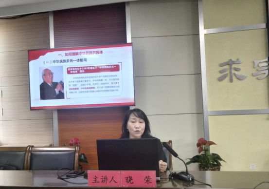 马克思主义学院晓荣副教授作了题为“铸牢中华民族共同体意识 增进中华民族大团结”专题讲座。她从如何理解中华民族共同体,为什么要铸牢中华民族共同体意识,紧紧围绕铸牢中华民族共同体意识主线、增进中华民族大团结等三方面进行详细讲解,进一步加深了各统战委员对铸牢中华民族共同体意识的认知和感悟。
