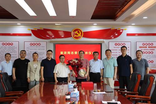 与会同志们追忆经历、共话情谊,表达了对梁政同志的不舍之情和美好祝福。李景杰、李凤斌为梁政同志颁发了纪念品、荣休证书并赠送了鲜花,与会人员进行了合影留念。