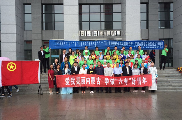 6月10日,由校团委主办,数学系、蒙文系团总支承办的“守望相助 亮丽北疆”——“爱我亮丽内蒙古•争做‘六有’好青年”庆祝自治区成立70周年“民族团结建设月”签名活动在泉山校区逸夫楼广场举行。