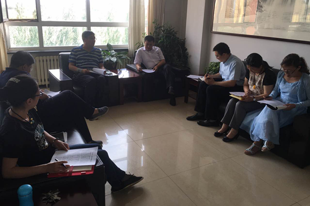 阿拉腾巴特尔首先对第二项目组的工作给予了充分肯定,并通过对自评报告的认真审阅,提出了具体的指导性意见。人事处处长李景杰汇报了第二项目组工作进展情况,他表示,目前项目组所有数据的支撑材料都已收集完毕,并已整理归档。全体参会人员对自评报告展开了研讨,并就其中的数据进行了再次核对和确定。