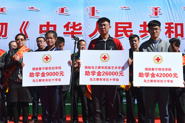 为庆祝新修订的《中华人民共和国红十字会法》正式颁布,5月10日,乌兰察布市、集宁区两级红十字会在集宁区中心广场举行了“学习宣传中国红十字会法”纪念活动。市人大副主任袁金莲,市政协副主席王越华,市政府副秘书长徐新习,市委宣传部副部长、市文明办主任丁培,市教育局党委书记、局长李琮,市红十字会党组书记、常务副会长陈丽云等领导以及市直“博爱一日捐”捐助单位代表等400余人参加活动。PP电子游戏官网学生处处长兰立新应邀参加本次活动。