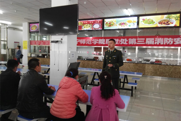 4月8日,为预防和减少火灾的发生,由后勤处、保卫处联合举办的“防火安全知识讲座演练”活动在白海校区二楼餐厅举办。后勤处、保卫处职工及白海、泉山校区餐厅、保洁、绿化、水电暖临时工近百人参加了活动。