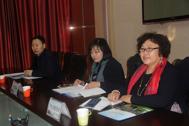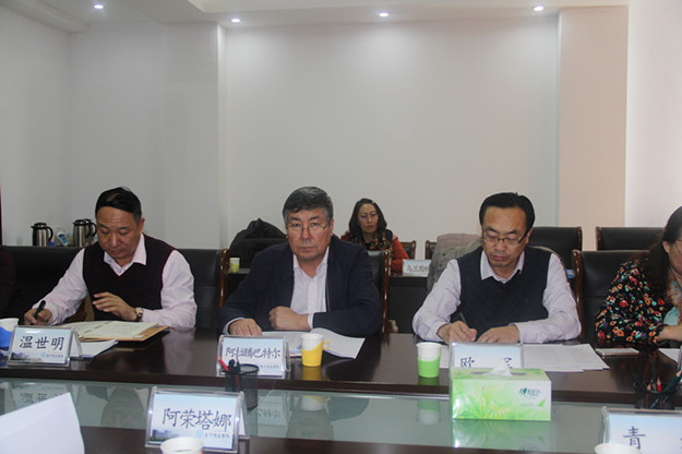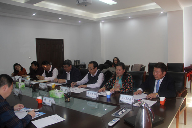 校长助理、办公室主任欧军,科研设备处处长温世明,蒙文系党总支书记青龙、系主任南斯力玛、副主任孟美英等与调研组成员一起座谈。