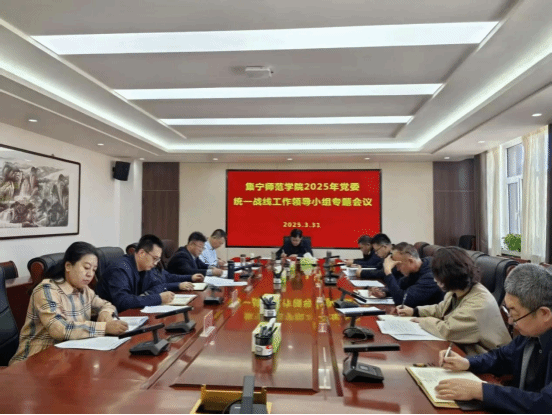 3月31日上午,PP电子游戏官网在泉山校区召开2025年党委统一战线工作领导小组专题会议。校党委书记、统战工作领导小组组长张宝成主持会议并讲话。党委副书记李景杰,党委委员、统战部部长赵向军出席会议。学校统战工作领导小组相关成员参会。