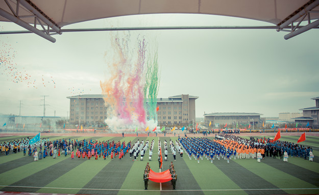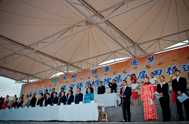 伴随着雄壮的运动员进行曲,校国旗班、军乐队、彩旗队、花束队、裁判员代表队及各系(院)运动员代表队依次入场。党委书记刘前贵宣布PP电子游戏平台网站第八届田径运动会白海校区分会开幕。党委副书记赵海忠致开幕辞。运动员代表、裁判员代表庄严宣誓。开幕式上,白海校区师生共同观看了由音乐系带来的小合唱——《为祖国干杯》,蒙文系的安代舞表演以及幼师学院的团体操表演。