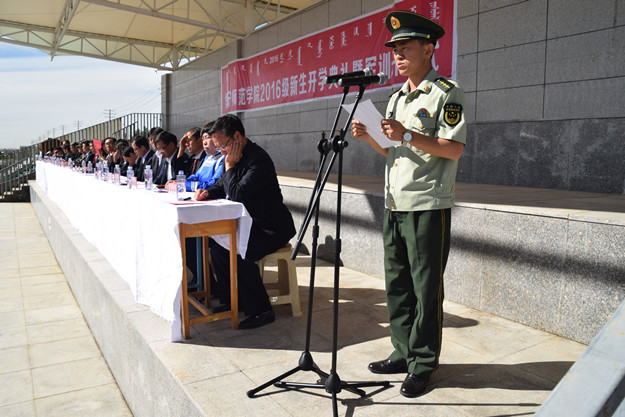 党委副书记、纪委书记张利平,党委委员、副校长许卫,党委委员、副校长阿拉腾巴特尔,党委委员、组织统战部部长朱俊仙,校长助理、继续教育与合作办学处处长刘国栋,校长助理、校长办公室主任欧军,武警乌兰察布支队副参谋长陈德星等领导出席。武警乌兰察布支队的承训教官,相关系(院)、部门负责人,学工办主任、团总支书记、教师代表、学生代表,新生班主任及全体新生参加了开学典礼暨军训开训式。