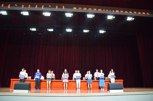 庄严的国歌响起,全体起立,毕业典礼正式开始。田智宣读关于学生毕业和授予学士学位的决定,宣读表彰2016年实习工作先进集体和先进个人的决定;党委副书记张利平宣读自治区级三好学生、优秀学生干部、优秀毕业生表彰决定。与会领导为毕业生和获奖集体、个人颁发了证书。