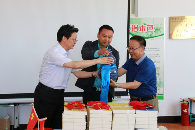 聘任仪式后,朱玉东、许卫、杨福和代表学校接收了李先生赠送政史系的书籍和文物。