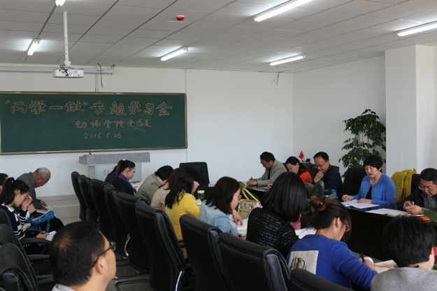 在全面解读“两学一做”和对幼师学院教工党支部、学生党支部“两学一做”进行具体部署安排的基础上, 5月26日下午,幼师学院党总支召开“两学一做”学习教育专题学习会。院党总支书记孙霞作了题为《学党章党规和系列讲话,做合格党员》的党课。幼师学院全体教师党员、预备党员和离退休党员,在校的学生党员和预备党员参加了学习会。
