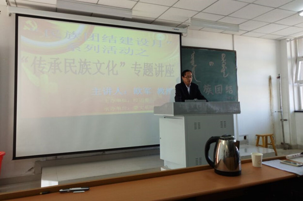 由校团委主办,数学系、蒙文系团总支承办的“民族团结建设月”系列活动之三——民族文化专题讲座于5月24日和5月27日分别在PP电子游戏官网泉山校区和白海校区举行。校长助理、校长办公室主任欧军应邀作了以“各民族文化交往、交流、交融是促进民族团结进步的精神动力”为主题的专题讲座。