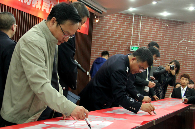 与会者在为学员惋惜的同时,也更加坚定了防毒、抗毒的决心。随后,与会领导和师生在宣传横幅上签名,郑重承诺“拒绝毒品,珍爱生命”。