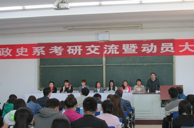5月5日,政史系、科研设备处在泉山校区主教楼201成功举办政史系2016年考研交流暨动员大会。政史系领导班子、部分无课教师及政史系2013级本科专业全体学生参加会议。科研设备处派代表列席。