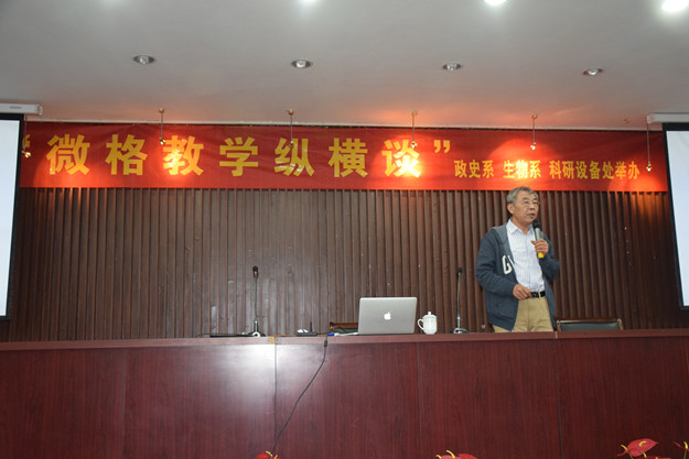 10月16日下午,著名教育专家孟宪凯教授在泉山校区图书馆报告厅作了题为《微格教学纵横谈》的讲座,讲座由生物系、政史系、科研设备处联合举办。政史系主任杨福和教授主持,生物系、政史系部分师生参加了讲座。