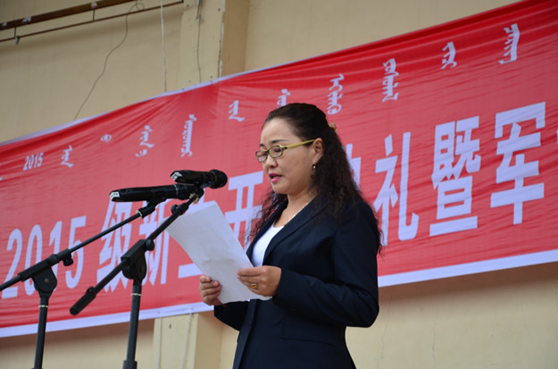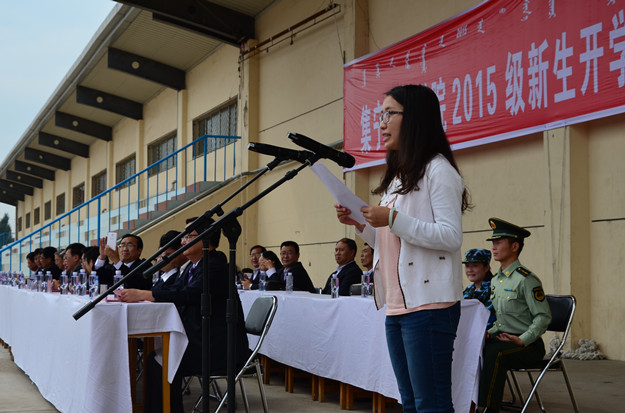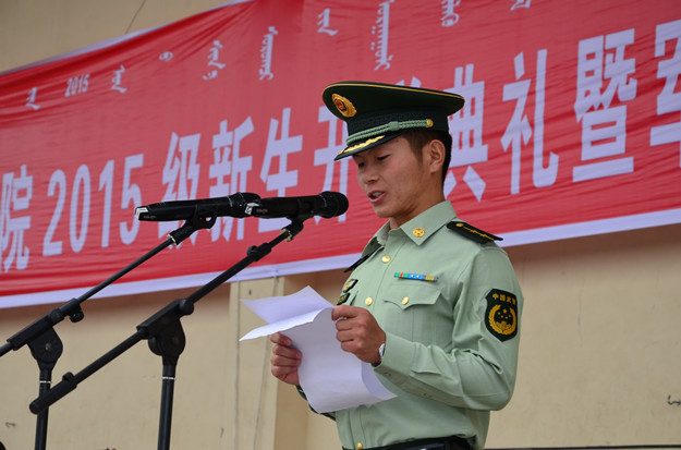 副校长梁政宣布了《2015级新生军事教育训练领导小组命令》。