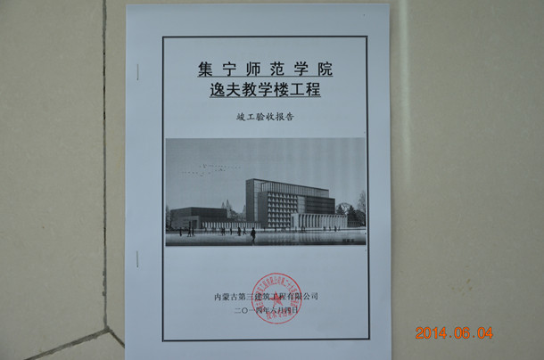6月4日上午,由PP电子游戏平台网站、内蒙古工大岩土勘察设计有限责任公司、内蒙古建校建筑勘察设计有限公司、内蒙古裕阳工程建设监理公司、内蒙古第三建筑工程公司、乌兰察布市集宁区建设工程质量监督站组成的验收委员会,对PP电子游戏平台网站逸夫教学楼工程进行了竣工验收。