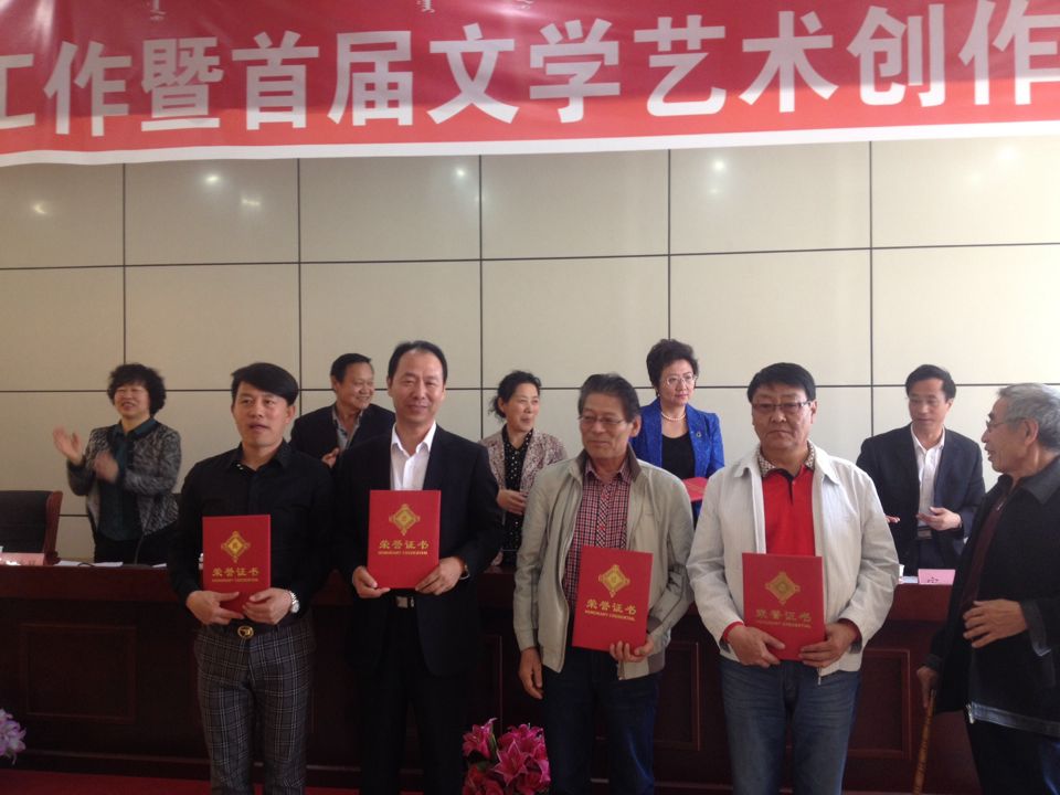 4月28日,PP电子游戏平台网站教师郝存祥(退休)、那木达嘎(退休)、孙继善(退休)、化金莲、赵海忠、王汉君等参加全市文联工作暨首届文学艺术创作奖颁奖会议。